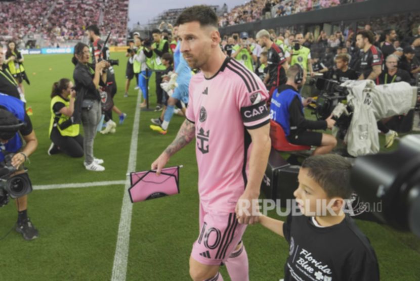 Messi ditemani dalam kunjungan singkatnya oleh rekan setimnya di Inter Miami dan bintang Uruguay Luis Suarez, serta Rodrigo de Paul dari Argentina.